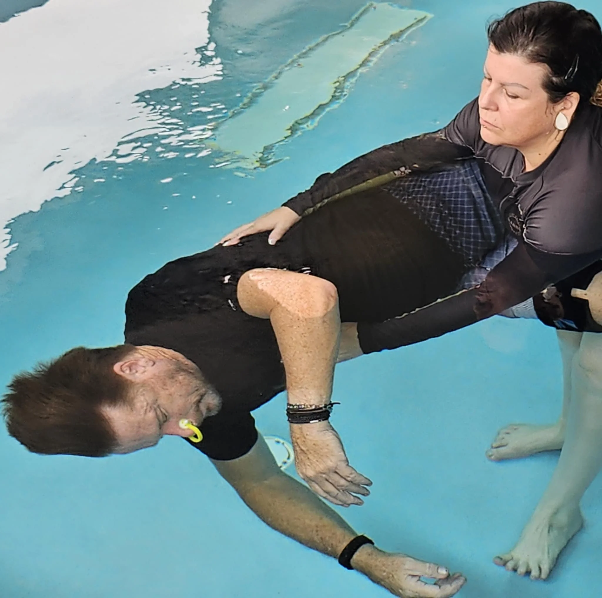 Hands-On Massage: Gentle stretches, fluid movements, and intuitive touch techniques to ease chronic tension and support circulation. The water creates resistance to release tight muscle and joint mobility.